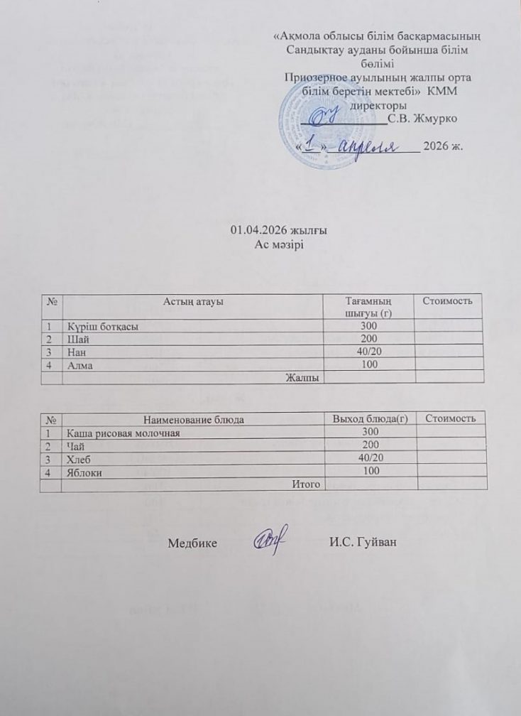 Коммунальное государственное учреждение "Общеобразовательная школа села Приозёрное отдела образования по Сандыктаускому району управления образования Акмолинской области"