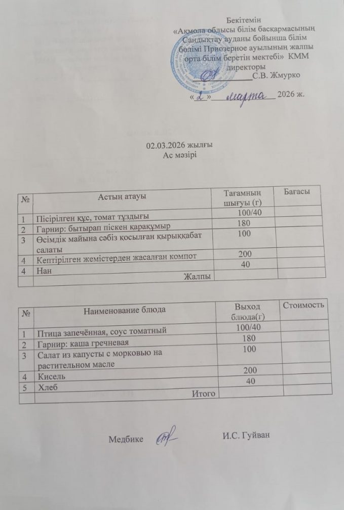 Коммунальное государственное учреждение "Общеобразовательная школа села Приозёрное отдела образования по Сандыктаускому району управления образования Акмолинской области"