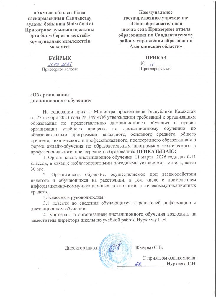 Коммунальное государственное учреждение "Общеобразовательная школа села Приозёрное отдела образования по Сандыктаускому району управления образования Акмолинской области"