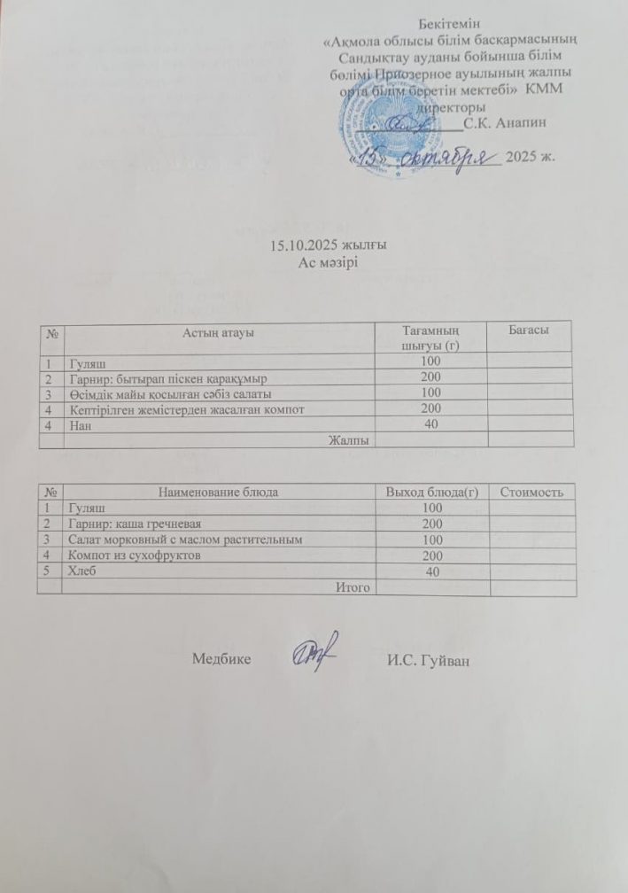 Коммунальное государственное учреждение "Общеобразовательная школа села Приозёрное отдела образования по Сандыктаускому району управления образования Акмолинской области"