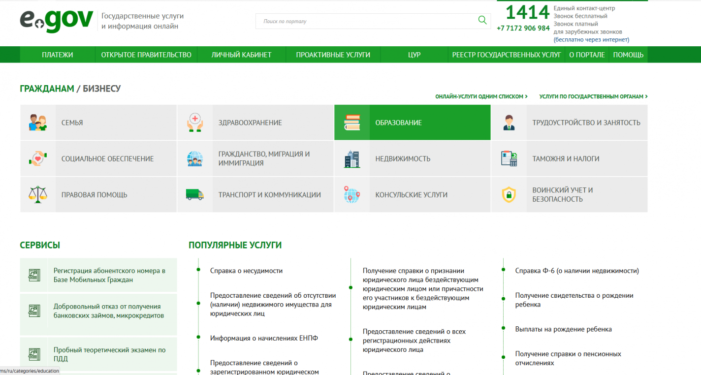 Услугополучатель получает информацию о порядке и статусе оказания государственной услуги в режиме удаленного доступа посредством "личного кабинета" портала, интернет-ресурса услугодателя, справочных служб, а также Единого контакт-центра 1414, 8 800 080 7777.