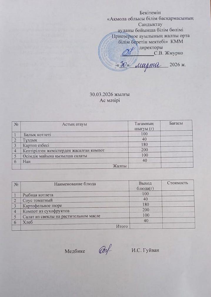 Коммунальное государственное учреждение "Общеобразовательная школа села Приозёрное отдела образования по Сандыктаускому району управления образования Акмолинской области"