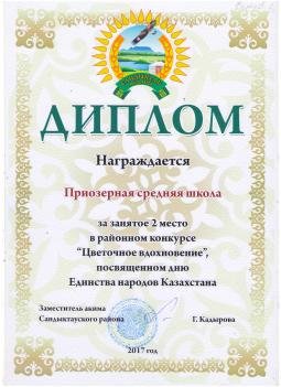 - аудандық «Цветочное вдохновение» байқауында 2 орын алғаны үшін (Сенн Е.В., Кравченко Л.В., Анисимова Т.А., Найда Д.В., Сергеева С.А., Махомет Е.Н., Михайлёва Т.В., Михайлев В.Н. және олардың...